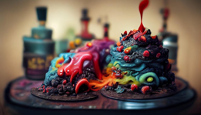 할로윈 파티의 디저트 테이블에서 가장 눈에 띄는 메뉴 중 하나는 바로 할로윈 젤리와 무스입니다. 밝은 오렌지, 짙은 보라, 검정색 포인트의 대비는 파티 분위기를 극대화하며, 맛과 비주얼 모두를 만족시킵니다.